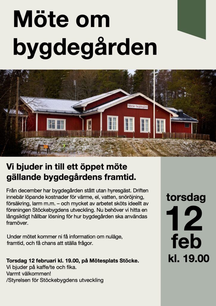 Vi bjuder in till ett öppet möte gällande bygdegårdens framtid.